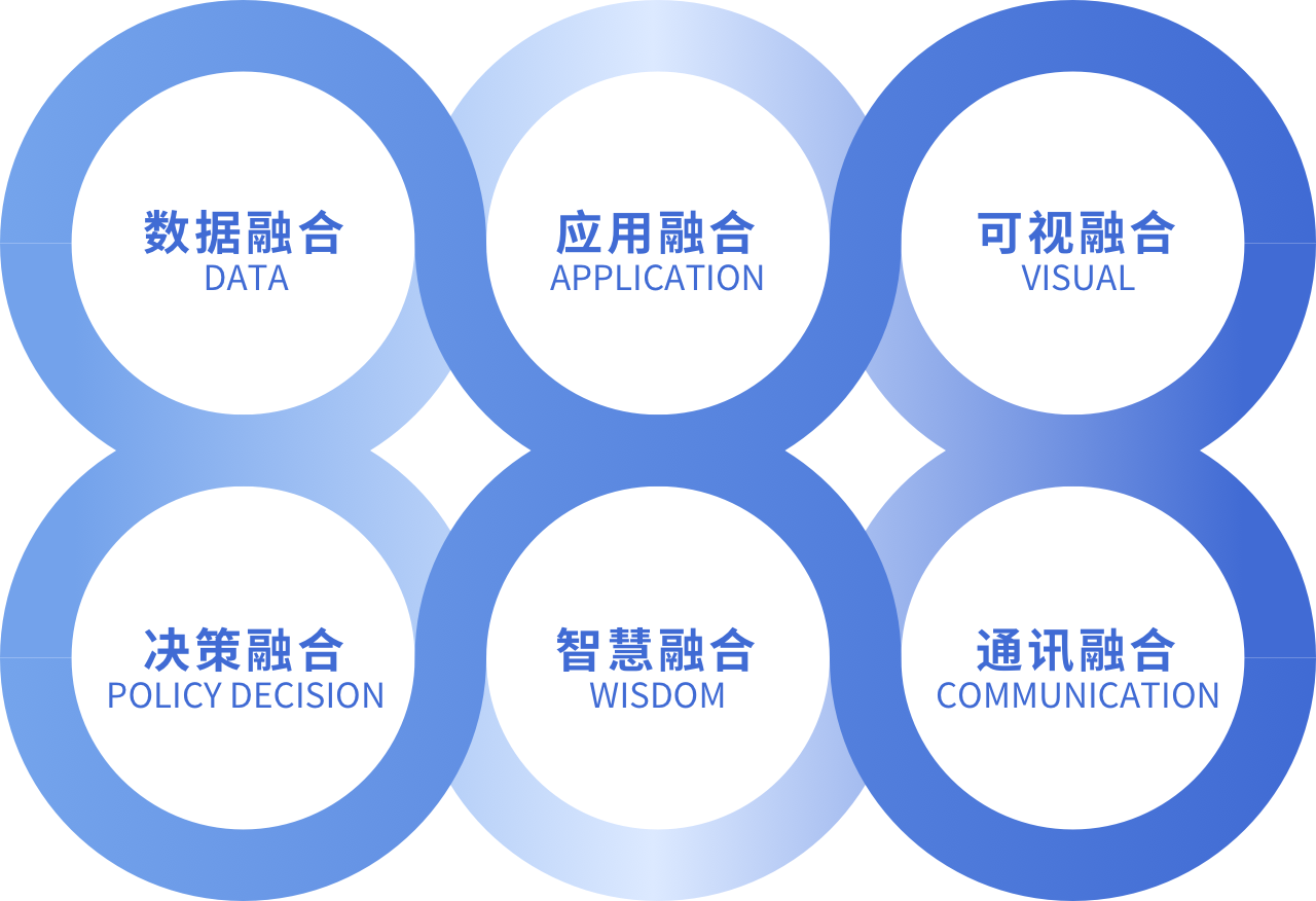 数字融合平台分为可视层融合、数据层融合、应用层融合和通讯层融合四大融合框架,彻底打通数据使用场景的应用壁垒,实现数据融合、应用融合、可视融合、决策融合、指挥融合和通讯融合。数字融合平台可以集成用户原有的各类信息系统,通过跨域数据融合技术自动完成多系统间的数据自动交互,并在数字融合平台内完成数据的整合和特征化处理。用户通过数字融合平台可以完成各个应用平台统一使用和自域数据仓库的一致性管理。