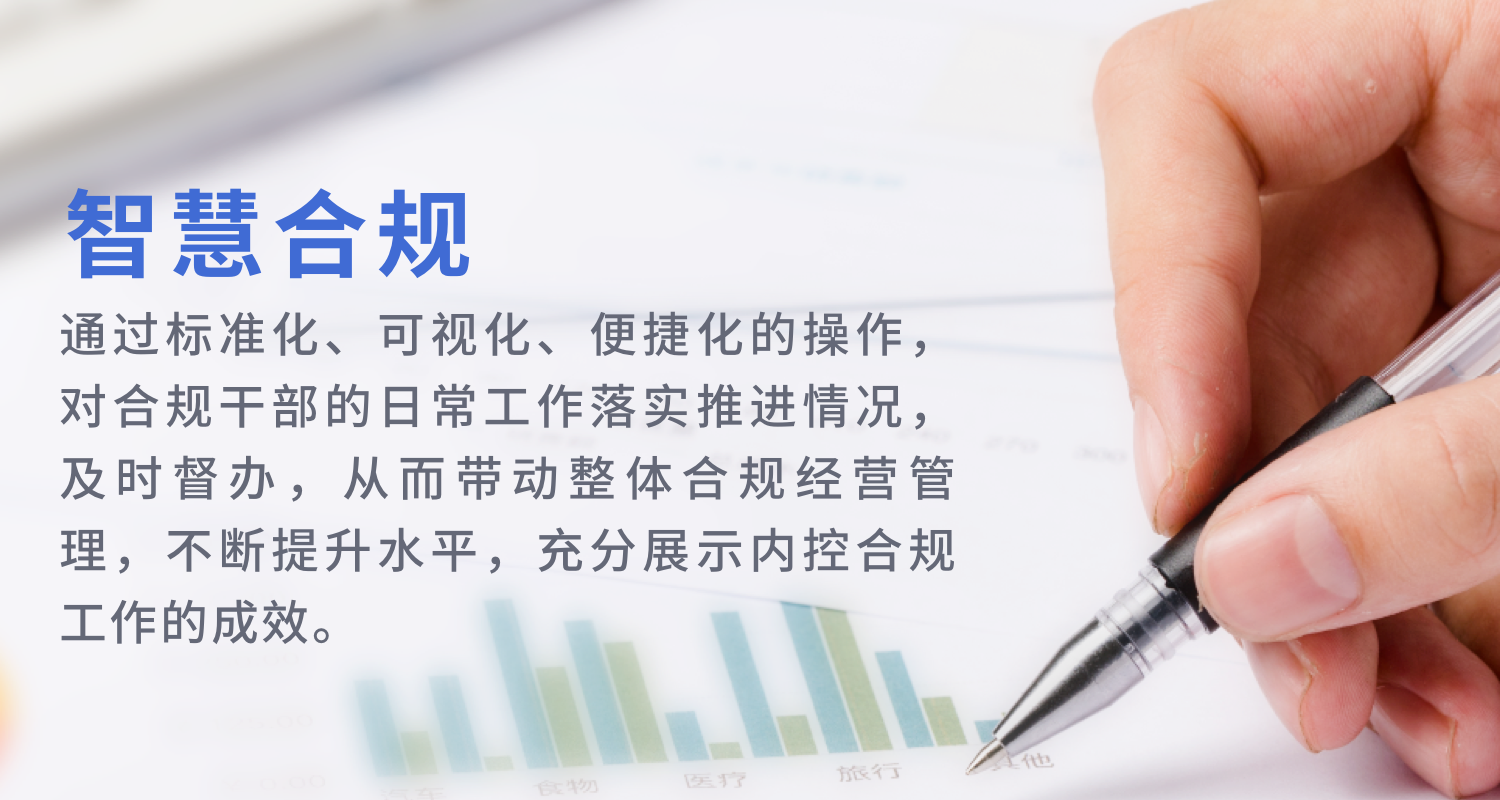 合规工作规范化管理平台不仅是一个工作平台,更是一个工作创新。通过平台实现员工全参与、业务全覆盖、流程全监控、管理全动态的工作目标。引导全体员工知道内控合规“做什么、谁来做、怎么做”,促进全员不断强化合规准则,努力实现“经营规律不可违、风险底线不可碰、合规底线不可越、侥幸心理不可有”目标,是合规工作走向信息化、标准化、科学化、流程化的新支点。